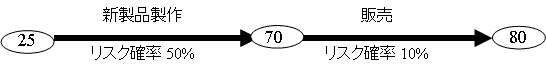 では、最初のように「製造」「販売」の2アクティビティからなるプロジェクトではどうなるか、順に計算してみよう。プロジェクトの期待価値は次のようになる。