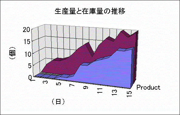 図をご覧ください。答えはNoです(青い部分が生産数量、赤い部分が仕掛在庫)。途中の在庫はどんどん増えてゆき、15日後に至ってもまだ増加傾向にあります。(これは乱数シミュレーションなので全体傾向で見てください)