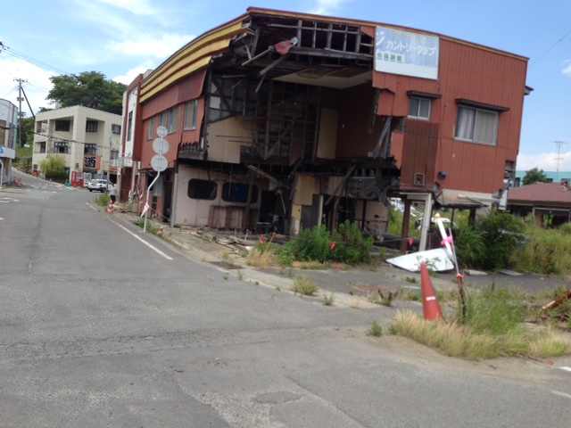 課題発表会の直前、わたし自身も東北を旅行した。震災から4年後の現在、現地がどうなっているのかを、少しでも見ておきたいと思ったのだ。最初に福島県の郡山に入り、それから二本松、土湯温泉、さらに飯館村を通って福島県の浜通地方に出る。そして国道8号線沿いに、被害の最もひどかった太平洋岸の浜通地域を通る。このときはボランティアのバスに同乗させてもらい、カリタス原町センターのスタッフの方に案内していただいた。そのあと、岩手に抜け、最後に宮城県の涌谷町・仙台市を通って帰ってきた。