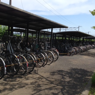 写真を2枚だけあげよう。上は、常磐線富岡駅前の光景だ。4年前の津波にえぐられたままの商店街の建物が、今も手つかずで残っている。ここらはまだ除染作業も進んでいないため、撤去修復にも戻れないのだ。下の写真は、南相馬市の常磐線小高駅の自転車置き場である。4年前の3月11日の朝、通勤・通学の人達はここに自転車を駐輪して、常磐線に乗っていった。そしてそのまま、誰も取りに戻れずに日々が過ぎたのだ(かりに帰還しても、自転車は汚染している可能性が高いから引き取れないだろう)。列車もその日以来、動いていない。ここではまだ、時間が全く止まってしまっている。