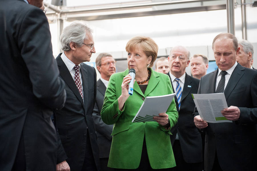 Industrie 4.0は周知の通り、ドイツ科学技術アカデミーAcatechが2013年にまとめ、メルケル首相に提出した最終報告書に端を発している。元はドイツ語なので-rieというスペルになっている。報告書の説明を受けるメルケル首相の写真を見たことのある人も多いだろう(AcatechのWebサイトより引用。ちなみに隣で怪訝そうに書類を眺めているのは、ロシアのプーチン君である)。これを受けてドイツ連邦政府は、産官学共同のためにかなり巨額の予算をあてる。ついでながらメルケル首相は、理系で博士であることも書き添えておこう。