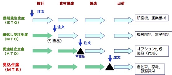 その代わり、MTO(繰返し受注生産)では、注文してから手に入るまでのリードタイムが長くなる。仮にあなたが年末ジャンボ宝くじの特等にあたって、海外メーカーのディーラーに行き、念願通りカタログにある最上等の豪華なスポーツカーを注文したとしよう。もちろんカタログに載っているからには、設計は済んでいる。だが、店頭に在庫はあるまい。十中八九、注文生産になる。そして何ヶ月も待たされることになろう。在庫リスクは小さいが、リードタイムの長さが、この種の生産形態のネックだ。それでも、先に述べたように、今日の日本の製造業のかなりの数が、この生産形態をとっている。