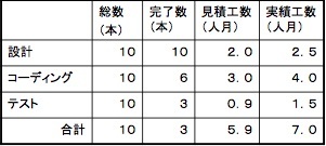 些細な点を一つ。表で「実績工数」の合計が7.0となっていますが、実際計算すると