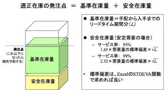 適正在庫の発注点 = 基準在庫量 + 安全在庫量