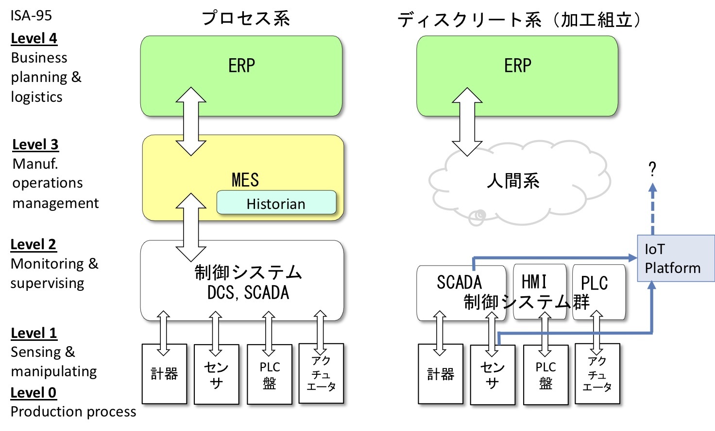 わたし達の研究会で「次世代スマート工場」を考えた際に、ポイントとなったことの1つが、ディスクリート系におけるMESの必要性である。現場に設置できるセンサーとIoTの技術は、その重要なイネーブラーであろう。