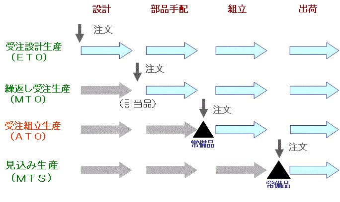 ところで、この3種類にたいして最近、新しい生産形態があらわれ、急進してきている。それが、ATOなのである。ATOとは、Assemble to Order。日本語で、『受注組立生産』という。